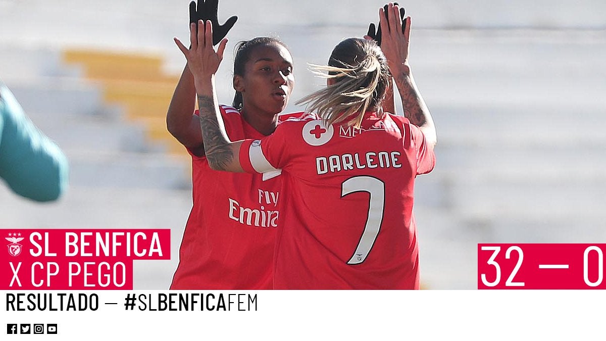 El conjunto femenino del Benfica, que milita en la Segunda División de Portugal, ganó este fin de semana 32-0 a la escuadra del Pego, por lo que logró la mayor goleada de la historia del futbol portugués femenino. Además, la internacional brasileña de 28 años Darlene fue capaz de anotar una decena de goles. El partido se disputó el sábado pasado en el Estadio da Tapadinha y el primer gol llego en el minuto dos, obra de Darlene. Al descanso ya iban 14-0, por lo que las encarnadas se marcaron el reto de llegar al 29-0 para superar el mayor registro de goles que se había alcanzado hasta la fecha. Otra delantera brasileña, Geyse, fue la encargada de llegar a la cifra soñada tras marcar el 29-0. Evy Pereira, natural de Cabo Verde, que fue la segunda máxima anotadora del partido con 7 dianas, certificó el 32-0 definitivo, por lo que el conjunto encarnado lograba el mayor registro goleador de Portugal. Al término del encuentro, el entrenador de las "benfiquistas" aseguró que sentía "mucho orgullo" por la hazaña alcanzada por las jugadoras. El club del Benfica decidió formar este año un equipo de futbol femenino para la próxima temporada jugar en la máxima categoría y, de momento, tras la Jornada 15, son líderes del campeonato.